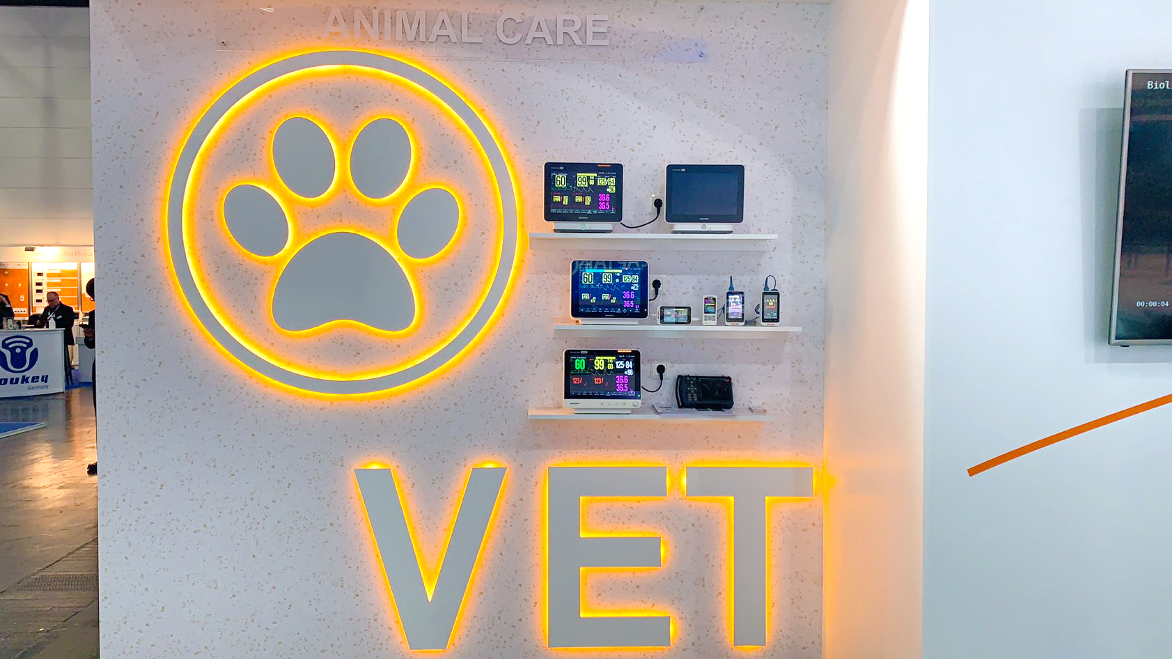 本届展会, 乐鱼(中国)展位以洁净白色为主色调,品牌橙光照亮醒目的产品标识,跃动的光束飘带彰显悦动生命的向上力。
